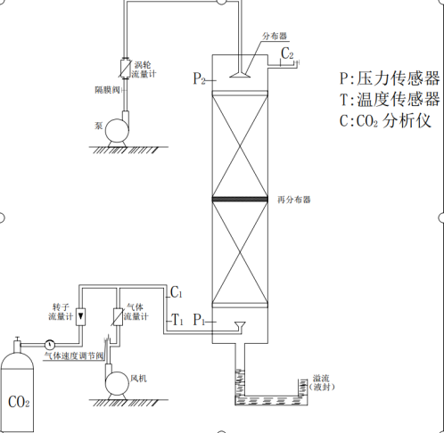 基于上述高效吸附劑開發(fā)相應(yīng)的裝備和工藝,期望獲得吸附劑種類、組合形式、床層中吸附劑的裝填方式以及氣液流量關(guān)系等對(duì)吸附效果、傳質(zhì)動(dòng)力學(xué)參數(shù)的影響規(guī)律。通過(guò)自主研發(fā)設(shè)計(jì)吸收塔,考察吸收塔中不同吸附劑、不同吸附劑的組合形式、裝填量及裝填方式、吸收劑用量等情況下,對(duì)溶質(zhì)的吸收凈化效果以及吸收劑在填料中的流動(dòng)性能。針對(duì)特定的吸附質(zhì),給出較為優(yōu)化的吸收工藝。